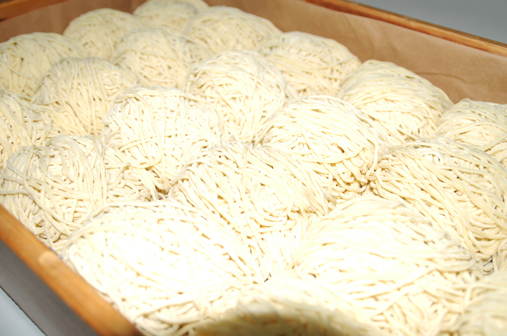 業務用中華麺の製造もおこなっております。つるつるしこしこのコシの強い麺が特徴です。